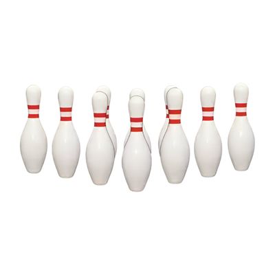ボウリングピン の 形 は,普通 の 花瓶 と 同じ よう に,下部 は 厚い,上部 は 薄い.その 高さ は 通常 38 センチ から 38.85 センチ まで です.厚い部分は直径約12cm~12cm.1センチメートル,底径は約5.02センチメートルから6センチメートルである.これらの寸法により,ピンは配置されたときに安定した三角形構造を形成する.