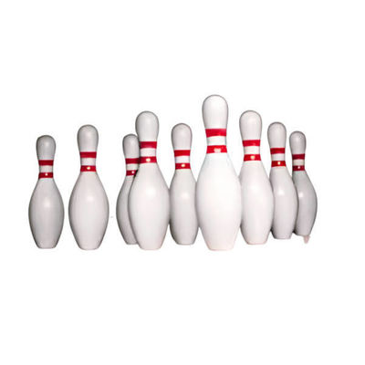 ボウリングピン の 形 は,普通 の 花瓶 と 同じ よう に,下部 は 厚い,上部 は 薄い.その 高さ は 通常 38 センチ から 38.85 センチ まで です.厚い部分は直径約12cm~12cm.1センチメートル,底径は約5.02センチメートルから6センチメートルである.これらの寸法により,ピンは配置されたときに安定した三角形構造を形成する.